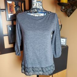 APT. 9 GRAY 3/4 SLEEVE SHEER PATTERNED HI/LOW TOP!$20Taunton, MA