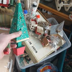 Putz House Vintage Snow Man 1930 West Germany And Putz Xmmas Tree Mint$250Providence, RI