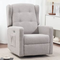 Power Swivel Rocking Recliner Chair, High Back Electric Rocker Nursery Glider Chair, USB and Type-C Ports, Upholstered Teddy Fabric Reclining Single S$250Irmo, SC