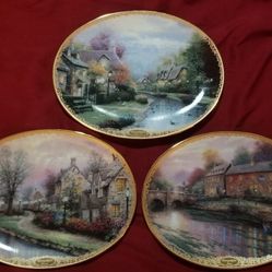 Set of 3 Bradford Exchange Thomas Kincade LAMPLIGHT VILLAGE Oval Plates$30Blythewood, SC