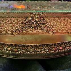 Antique Footed Jewelry Box. Gold and Vintage Hollywood regency mirror$85Batesburg, SC