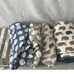 The Land Of Nod Crib Sheet Set Make a Splash Whales Blue Gray Fitted Skirt Quilt$125Blythewood, SC