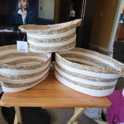 NEW 3 WEAVED BASKETS WITH HANDLES. LARGEST 6"T X 18"L X 10"W. RETAIL $24$16Columbia, SC