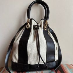 Valentina Italian Leather Bucket Bag Cream Brown Gold Tone Hardware