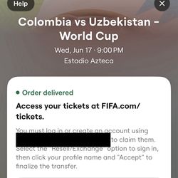 2 Colombia vs Uzbekistan Tickets$1,500Columbia, SC
