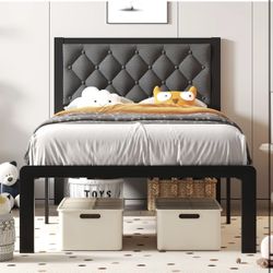 Twin Bed Frame with Headboard Linen Upholstered Bed Frame Platform,All Metal Slats Support Platform Bed Frame with Storage Space,Easy Assembly,Noise F$60Irmo, SC