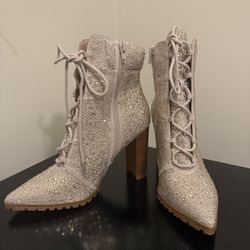 White Mesh Embellished Peep Toe Ankle Boots$50Thompson's Station, TN