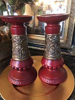 Set of 2 red candle holders in like-new condition! $22 OBO.$21Franklin, TN