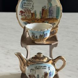VINTAGE Las Vegas Nevada Miniature Tea Set With Wooden Set Holder$15Abilene, TX