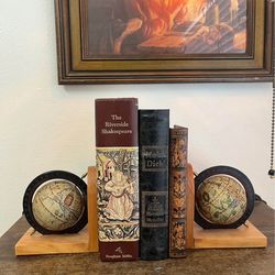 Vintage World Globe Bookends – Wood & Brass Style Library Decor$25Benjamin, UT