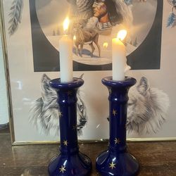 Vintage Cobalt Blue Star Candlestick Holders – Pair Celestial Decor$30Benjamin, UT