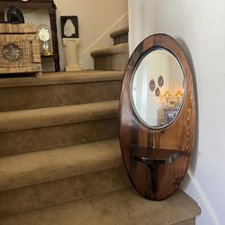 Vintage Oval Wood Mirror w/ Shelf – Entryway Wall Decor$40Benjamin, UT