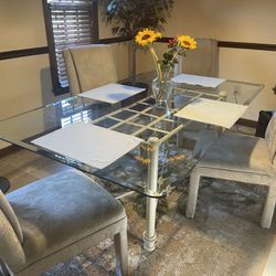 Rectangular Extension Glass Table And 4 Upholstered Chairs Set💫 Brand New💥 Metallic Silver 5 Piece Dining Room Set By Ashley Signature 💥 $1,709Richmond, VA