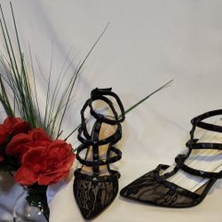 Black strappy gemmed heels size 6$15Snohomish, WA