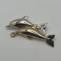 Vintage? Silver Gold Tone Metal Dolphins Brooch Pin Rhinestone Ball Beach Ocean Nautical$11Sheboygan, WI