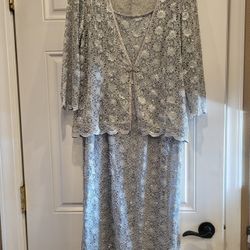 Women size 14 tall R&M Collection Silver sequined sleeveless full length dress with jacket, 2pc formal Mother of the Bride dress$20Janesville, WI