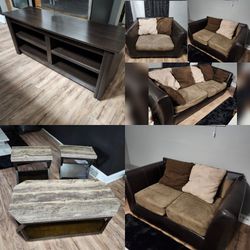 Living Room Set 7 Pieces Dark Brown Beige Sofas End Tables TV Stand$450Milwaukee, WI