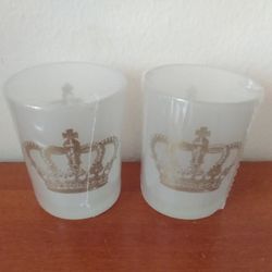 BRAND NEW IN PACKAGES 2015 MICHAEL'S TALL FROSTED GLASS GOLD CROWN EMBOSSED VOTIVE CANDLE HOLDERS ART DECOR - SET OF 2 $12Charleston, WV
