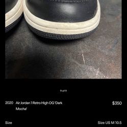 Nike Jordan 1 Dark Mocha 10.5$220Morgantown, WV