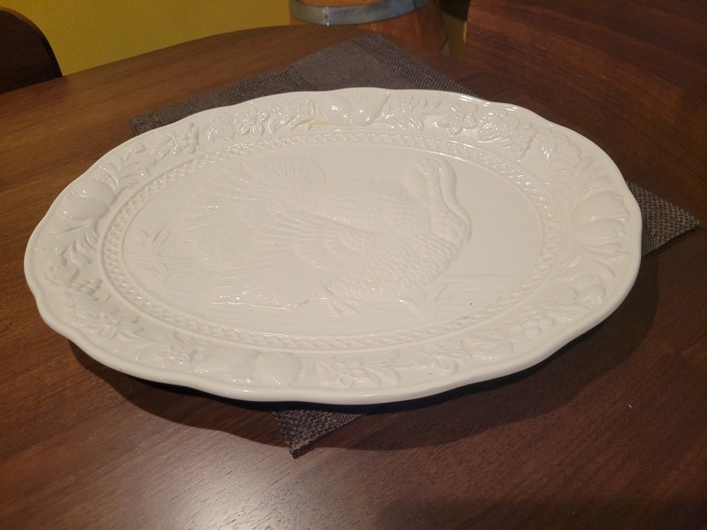 Vintage, white, oval turkey platter , signature brand from Japan. Small chip on back. 18" x 14".