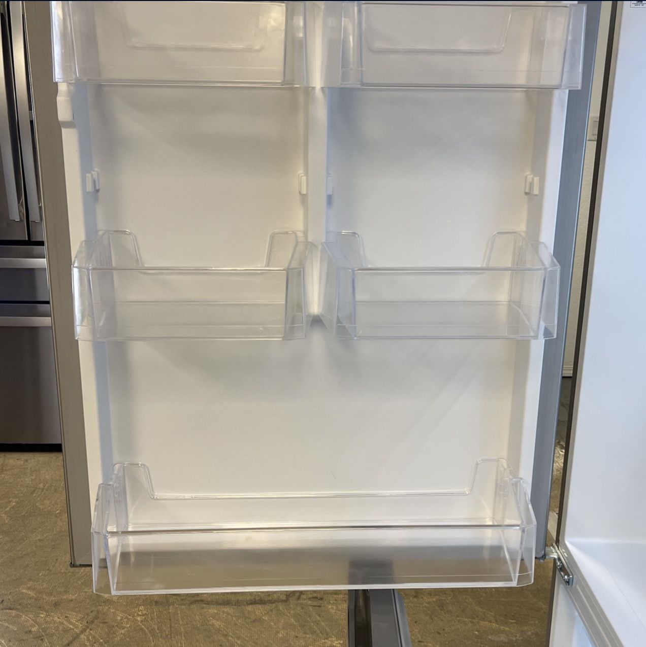 Has small dent on front door other than that is in perfect condition. This is not picture of fridge just the same model. Will deliver for $50 more