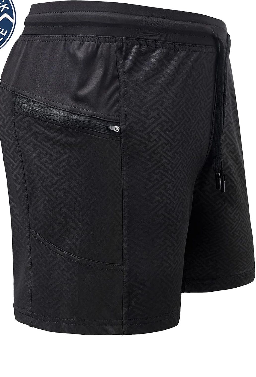 Mens Running Shorts 7 inch Quick Dry Workout Running or Gym Training Short with Zipper Pockets (Black, L)