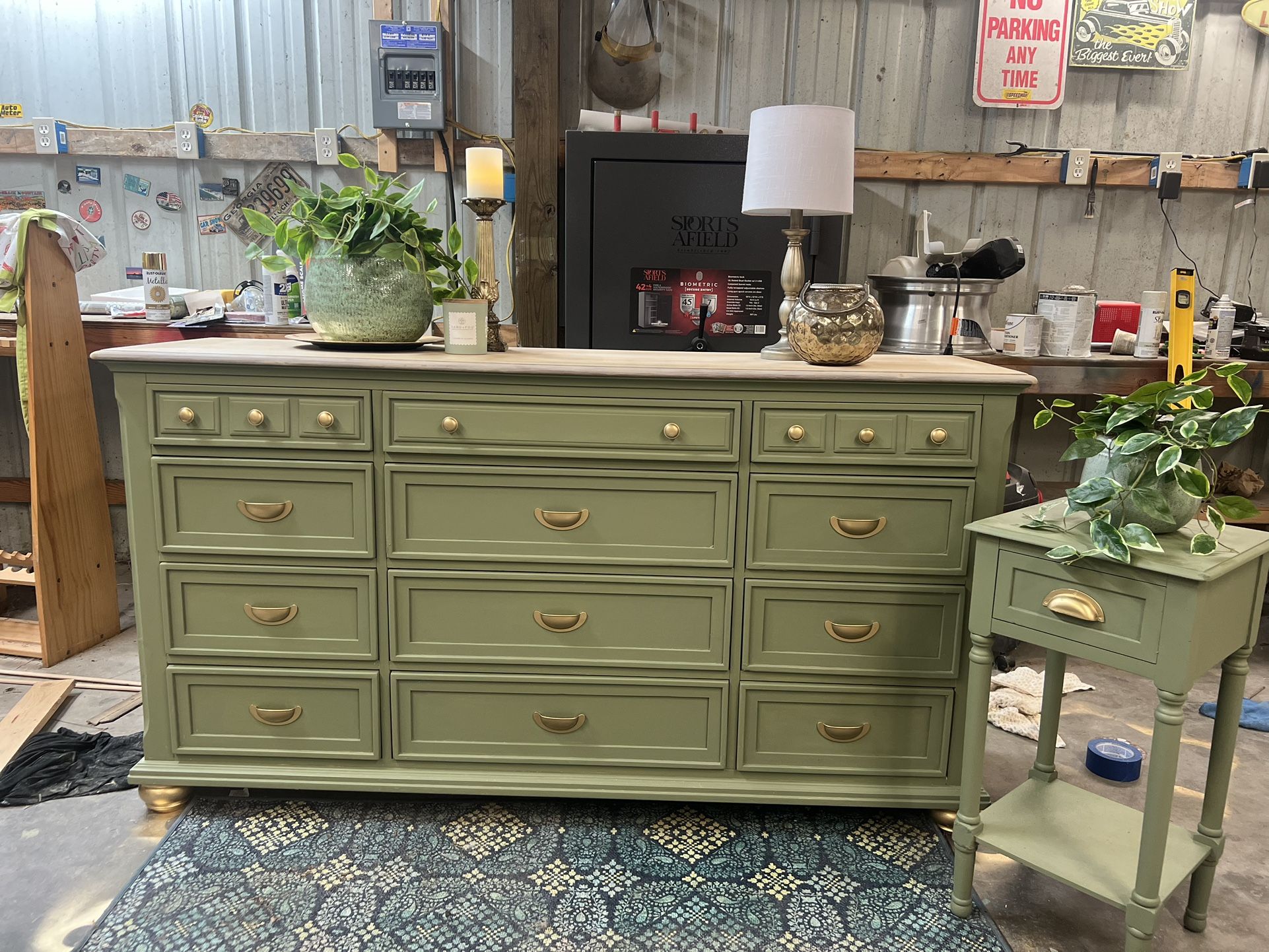Hand painted green and gold refurbished dresser. Dresser is in great condition. Open to offers.