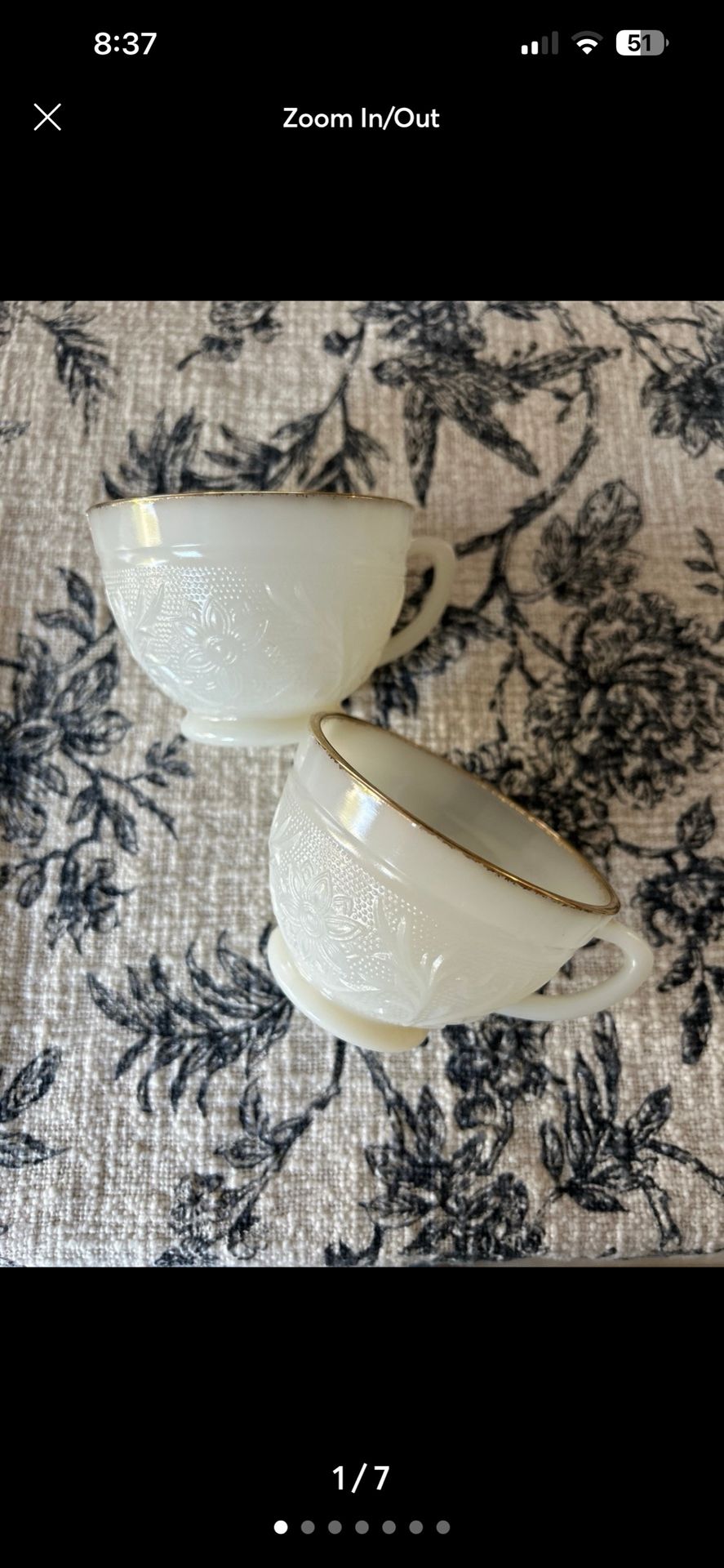 VTG Anchor Hocking Ivory Milk Glass Teacups Gold Rimmed, Sandwich Milk Glass Set of 2 So beautiful and classy!! This teacup pair would make a beautiful addition for you Spring and Summer shelf decor, or for a fancy tea party. Notice the stunningly detailed embossed floral design accented by the gold trim, truly stunning! Vintage, condition as shown in photos. There is some chipping on the bottom of one cup and scratching. The gold is rubbed away without a perfect line all the way around. Please view all photos for the best description of the condition. Offers and bundles welcome Tags: teacups, cups, mugs, vintage glassware, milk glass, anchor holding, vintage teacups, heart shelf decor, Cottagecore, farmhouse, farmcore, trad wife, gift for her, Mother’s Day gift, kitchen decor, grannycore, grandma style, home decor, china cabinet decorations dishes, teatime, tea lover, afternoon tea, tea party, Porch pickup Ceres, Cash accepted