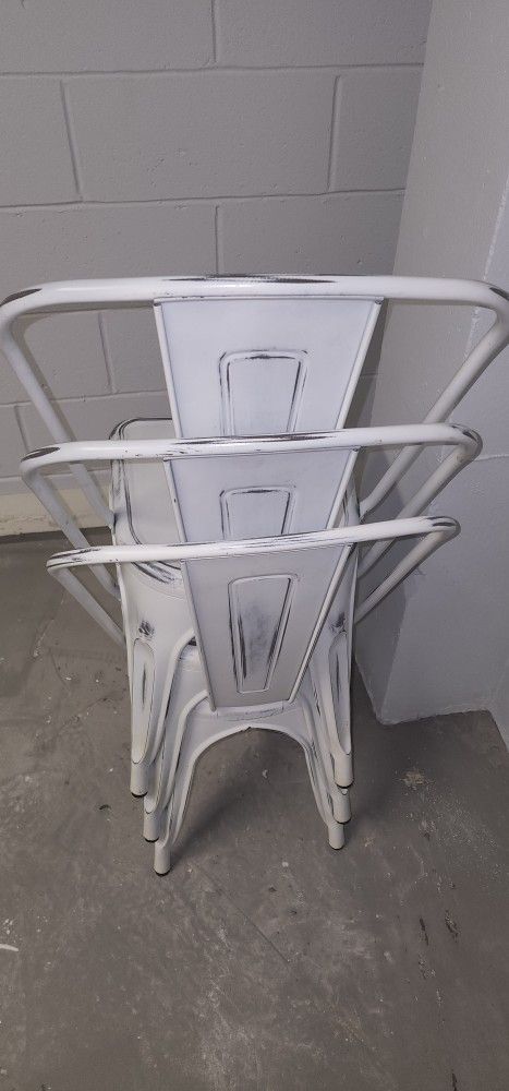 3 Metal Chair Stackable Like New White