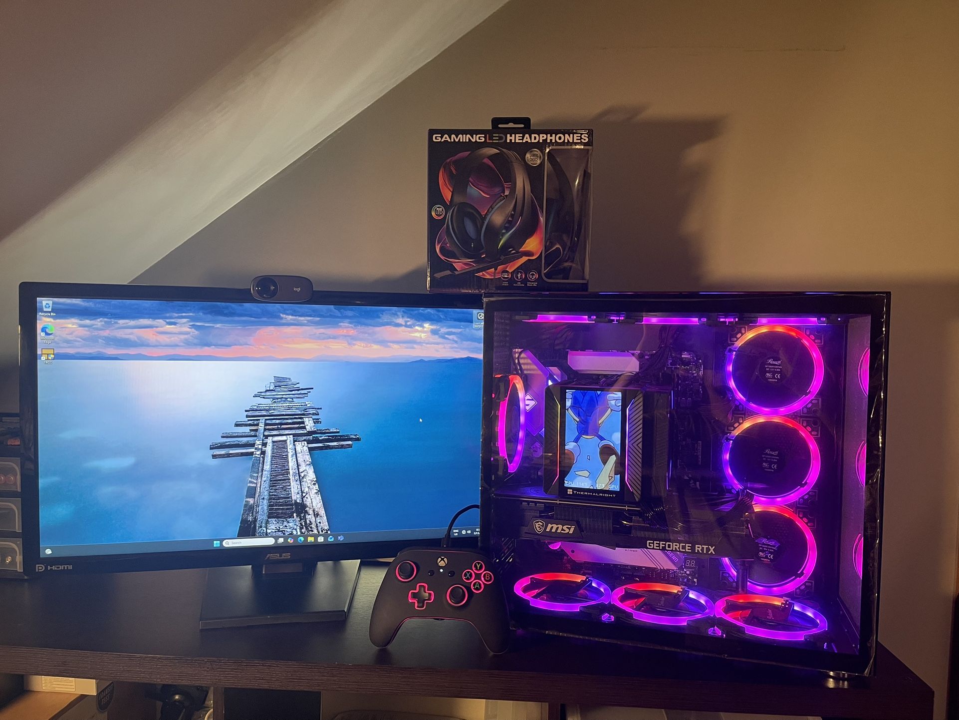 Powerful newly built PC comes with the following: - GameMax Infinity ATX Mid Tower Computer Case w/ Dual Tempered Glass Panels - 10 performance dual RGB fans & controller for different RGB modes - B550 Steel Legend Motherboard with WiFi and Bluetooth - AMD Ryzen 9 5900X 12 Core Processor - Thermalright Peerless Assassin 120 Vision MAX ARGB CPU Cooler with 5 Inch LCD video screen that can play any MP4 file - 32 GB DDR4 RAM (2x16 GB) - MSI RTX 3070Ti 8GB Graphics Card - 750W 80+ Gold Addressable RGB Gaming Power Supply fully modular - 256 GB M.2 SSD Boot drive & 2TB storage drive - Licensed Windows 11 Pro installed and updated - Includes a 27” Asus Monitor with HMDI - Includes an RGB XBOX gaming controller - Includes a new in box RGB Gaming Headset - Includes a Logitech webcam for steaming - Can also include a new in box Dell generic Keyboard & Mouse if needed This PC is brand new and professionally built with brand new parts ready to plug and play! It has been tested and runs perfect and extremely fast! Download all of your favorite games and start streaming and gaming at excellent FPS today! Buy from a trusted 5 star reviewed seller. Asking $1350 for this entire setup that includes everything listed above! Pickup near Irving Park and Central. Delivery available for an additional fee