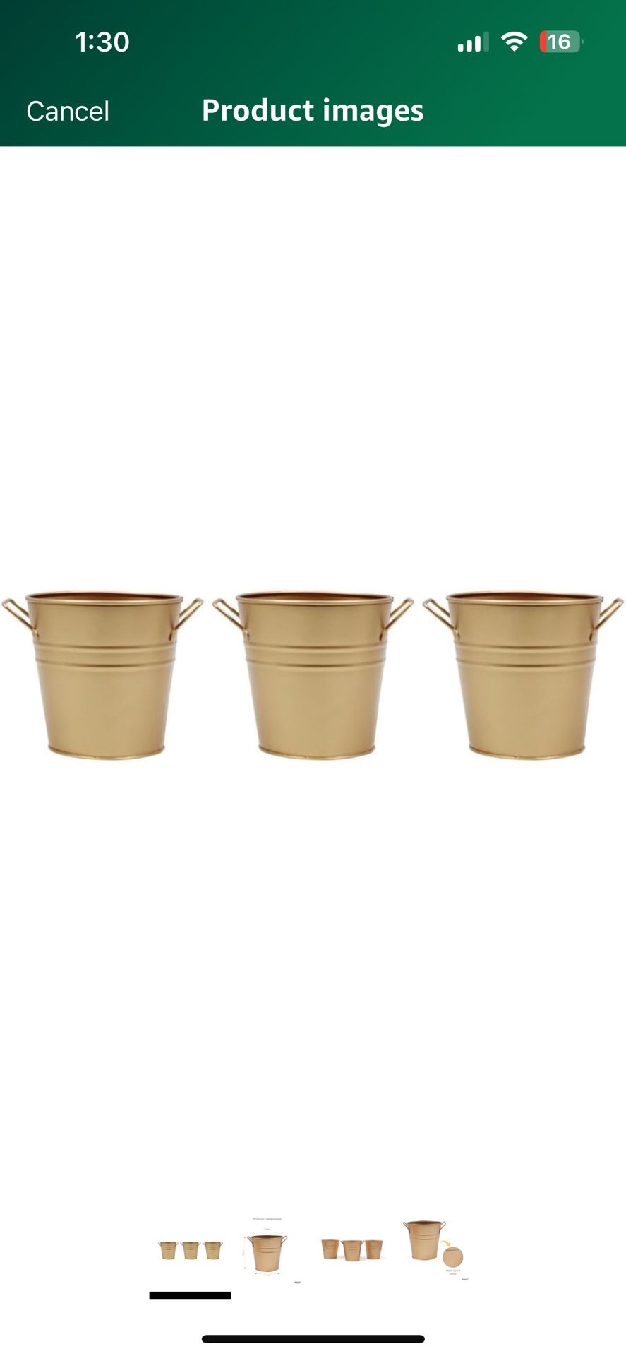 Set of 3 Gold Metal Bucket/Pots with PVC Liner, Ideal Gift for Floral Arrangements Wedding Home Office Party DIY Indoor Outdoor Garden Patio 5" Dia x