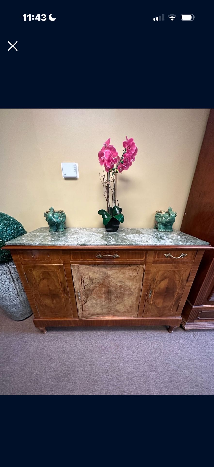 Antique Wood Armoire Buffet Cabinet Marble Top