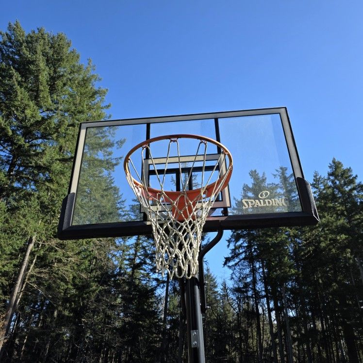 Spalding adjustable basketball hoop. 3 years old. Filled with sand. Barely used. Just sits outside. Low ball offers will not be responded to. $140 OBO