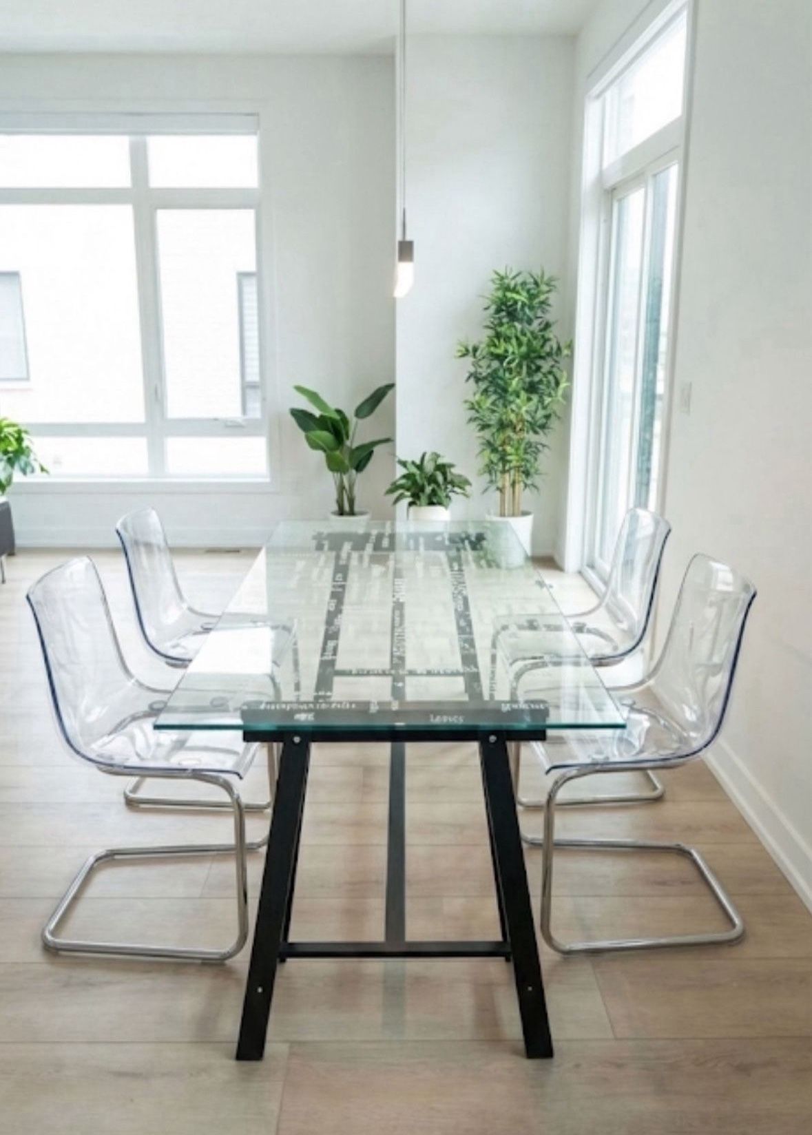 YES, IT IS AVAILABLE Modern Glass Dining Table + 4 Clear Acrylic Chairs - High-End Contemporary Set Beautiful modern dining set featuring a thick clear glass table and four transparent acrylic cantilever chairs with chrome frames. Sleek, airy, and designer-style - perfect for condos, lofts, staging, or luxury rentals. Includes: • 1 Heavy clear glass dining table • 4 Clear acrylic chairs with chrome cantilever bases Condition: Excellent - Clean, solid, no cracks, no wobble Style: Modern / Minimal / Contemporary Seats: 4 comfortably Perfect for: • Modern apartments • High-end rentals & Airbnbs • Staging & photo shoots • Design studios • Lofts & condos Price: $250 Delivery: $20-$40 depending on distance Location: Mission Valley Item can be reserved with advance payment. Check my Marketplace history for legitimacy and previous sales.