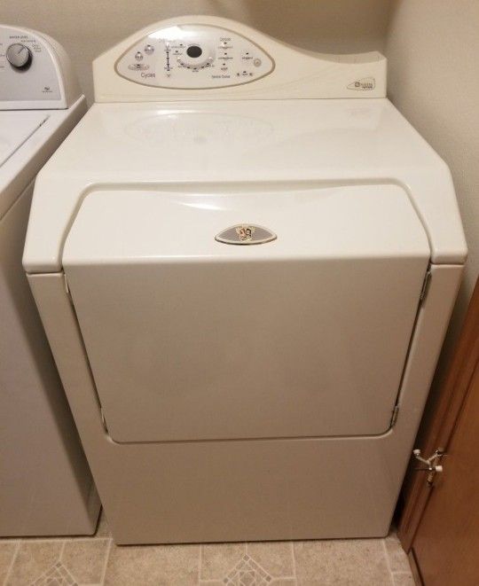 White Maytag Neptune dryer. Works great! Well cared for. Manuals included.
