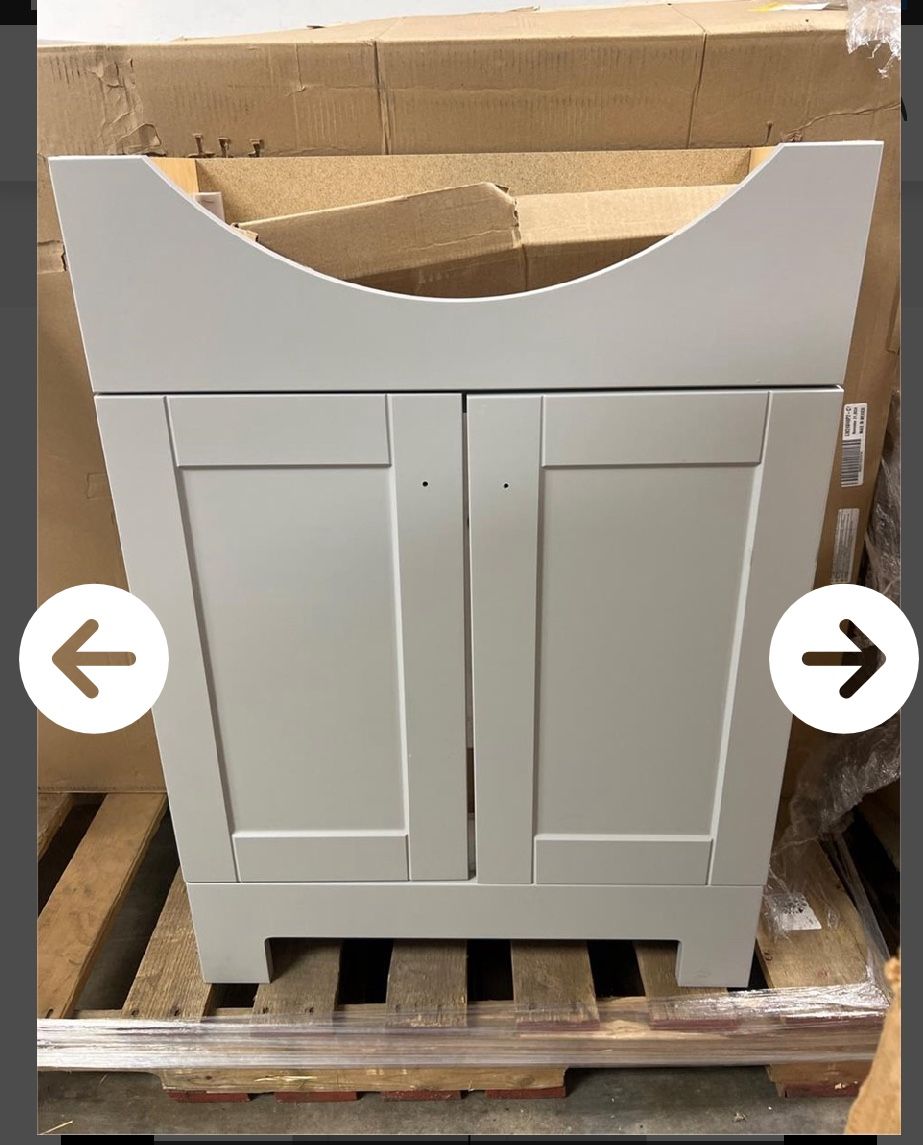 $174 Style Selections Euro 24-in Gray Single... Description Sink Bathroom Vanity with White Cultured Marble Top. Notes: Sink top is cracked on the bottom and top. Multiple minor scratches, and scuffs. No manual included. Missing hardware and door handles. Unknown of any other missing items. Heavy item, please bring assistance and appropriate vehicle Condition: Excellent Damaged?: Yes Damage Description: Sink top is cracked on the bottom and top. Multiple minor scratches, and scuffs In Packaging?: No Assembly Required?: No Missing Parts?: Yes Missing Parts Description: No manual included. Missing hardware and door handles. Unknown of any other missing items Functional?: Yes UPC: 0(contact info removed)1548 Brand: Style Selections Model: CE31J24-SS Title: $174 Style Selections Euro 24-in Gray Single Sink Bathroom Vanity with White Cultured Marble Top Tastefully conceal toiletries in this bathroom vanity from the Euro collection. Its Gray finish, thick, cultured marble top and minimal design enhance a variety of paint colors and bring a touch of brightness to your decor. Two doors with adjustable concealed hinges and satin nickel finish hardware allows you to store bath products under the sink, keeping your powder room clean and organized. A furniture-style toe kick opens up floor space, and European-inspired frameless construction allows for easy installation. At 24.5-in wide x 18.09-in deep, this fully assembled vanity offers additional storage without overwhelming your bath. Great for classic and transitional style bathrooms and powder rooms.