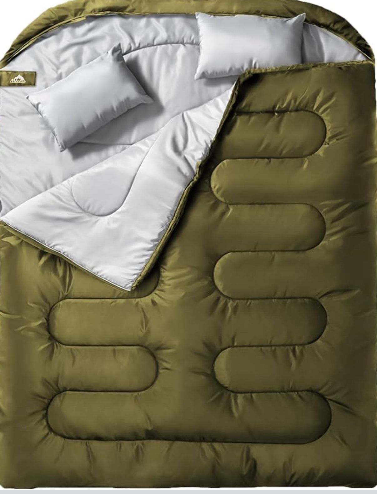 MEREZA Double Sleeping Bag for Adults Mens with Pillow, XL Queen Size Two Person