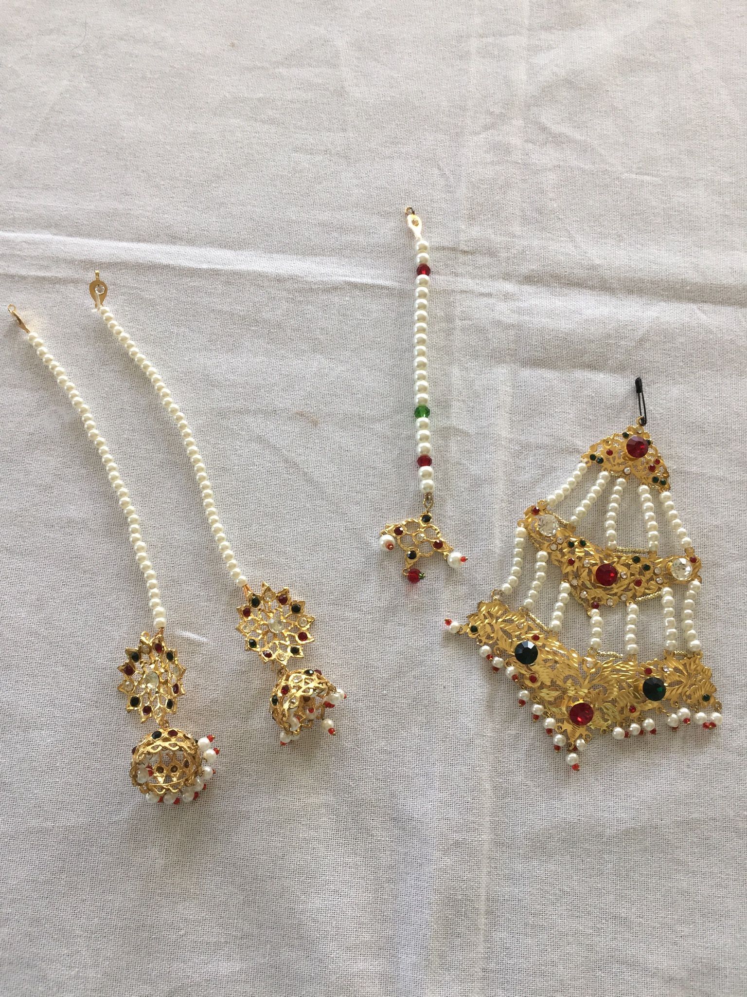 Lovely, shining condition. The jhoomar is mousing a hook at the top so a safety and Bobby pin have been attached.