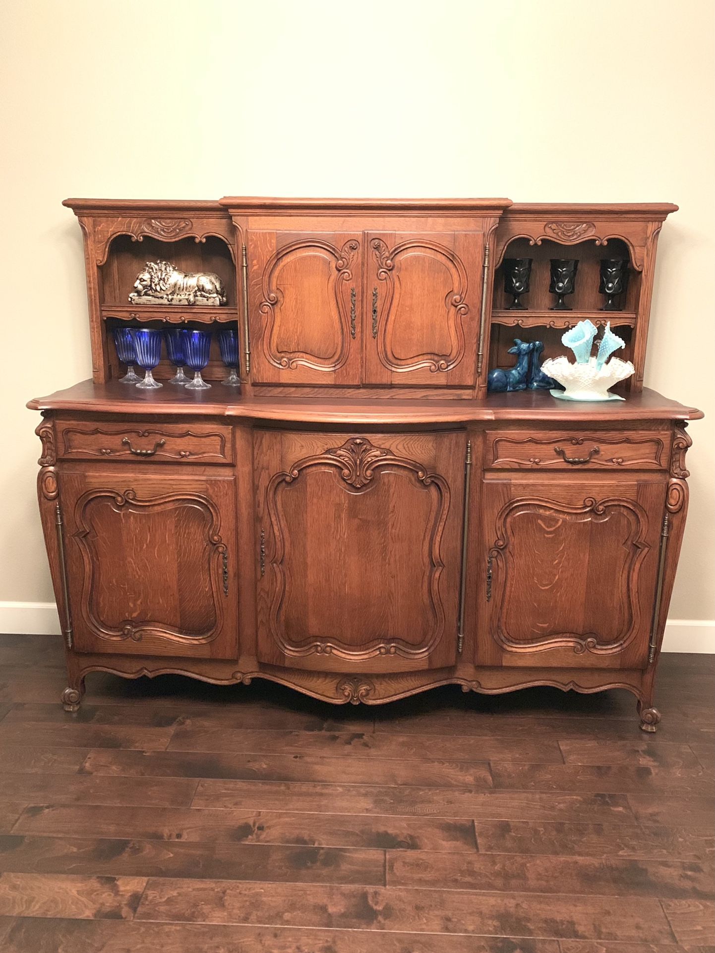 Antique french country louis xv sideboard/buffet 2pc Lenght 82in x Depth 24in x Height 66in This is over 120yrs old made in the mid to late 1800's to early 1900's french sideboard. It is in excellent condition with minor blemishes. Incredibly unique and one of a kind. Beautifully crafted! Items on the sideboard are not included. Comes from a smoke free and pet free home. Always willing to hear reasonable offers! Pick up in Ramona. I cannot deliver this piece. Thank you for your time and interest. $1,800. Cash offers only