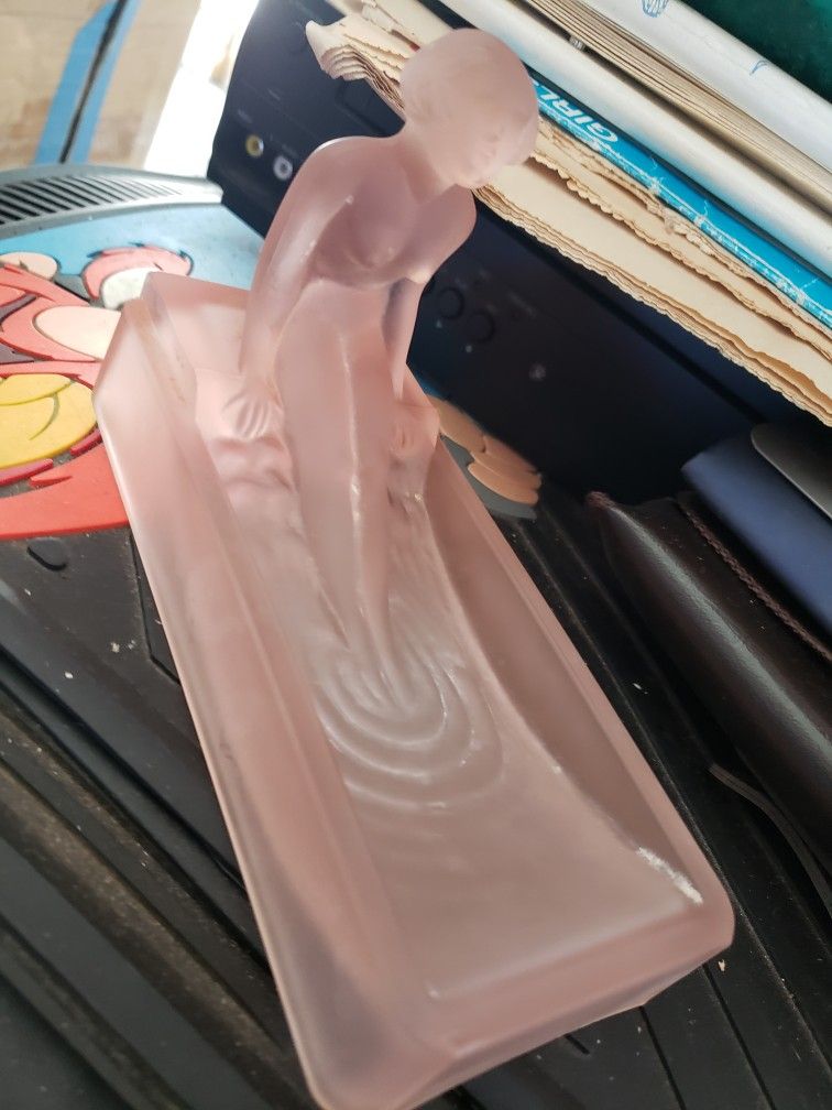 H. Hoffman Frosted Pink Glass Soap Dish