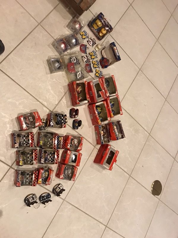 These are all new but very dusty and some out of the box. We never used them. They have been stored for around 12 years. 14 cars, 4 jacket and hat sets, 16 bulbs, 3 hoods, and 8 checked flags.