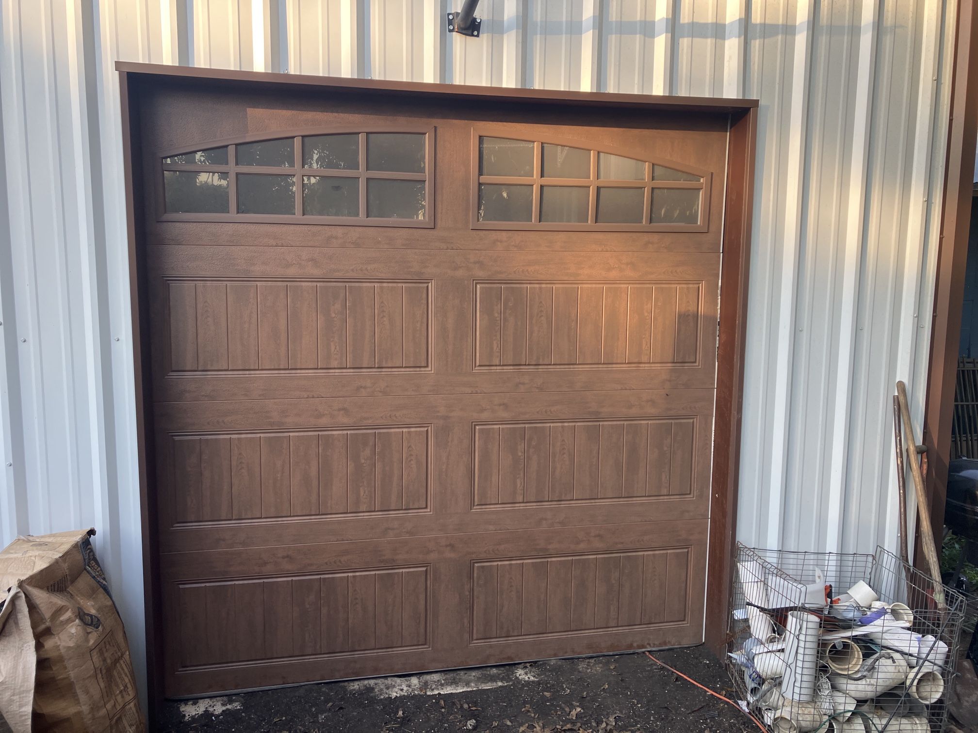 Steel back insulated carriage walnut finish with top arched glass. Retails for $1490 Selling it 600$ rjust door and delivery included…….$ 750 for door installation and delivery