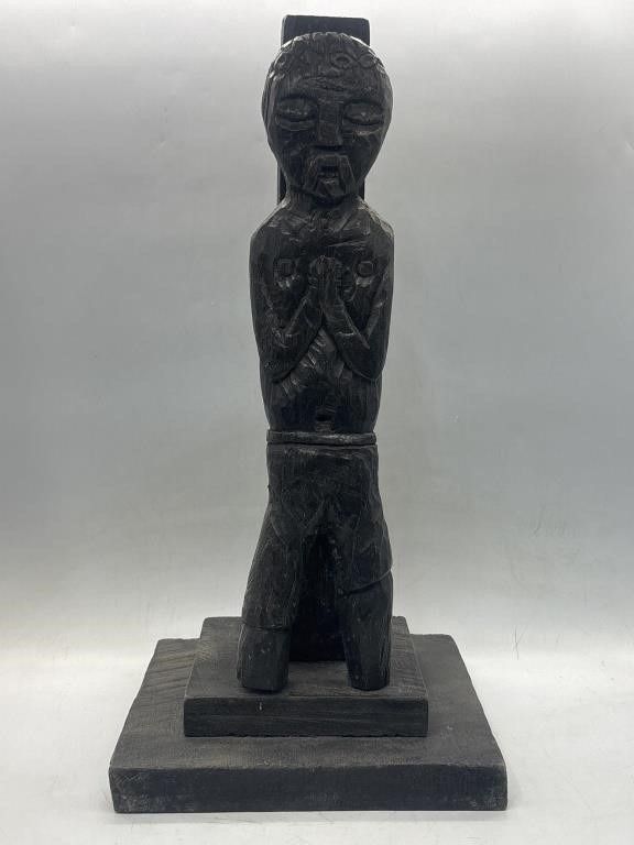 Hand-Carved Wooden Nepal/Tibet Shaman Figure Tribal Folk Art Sculpture 18”