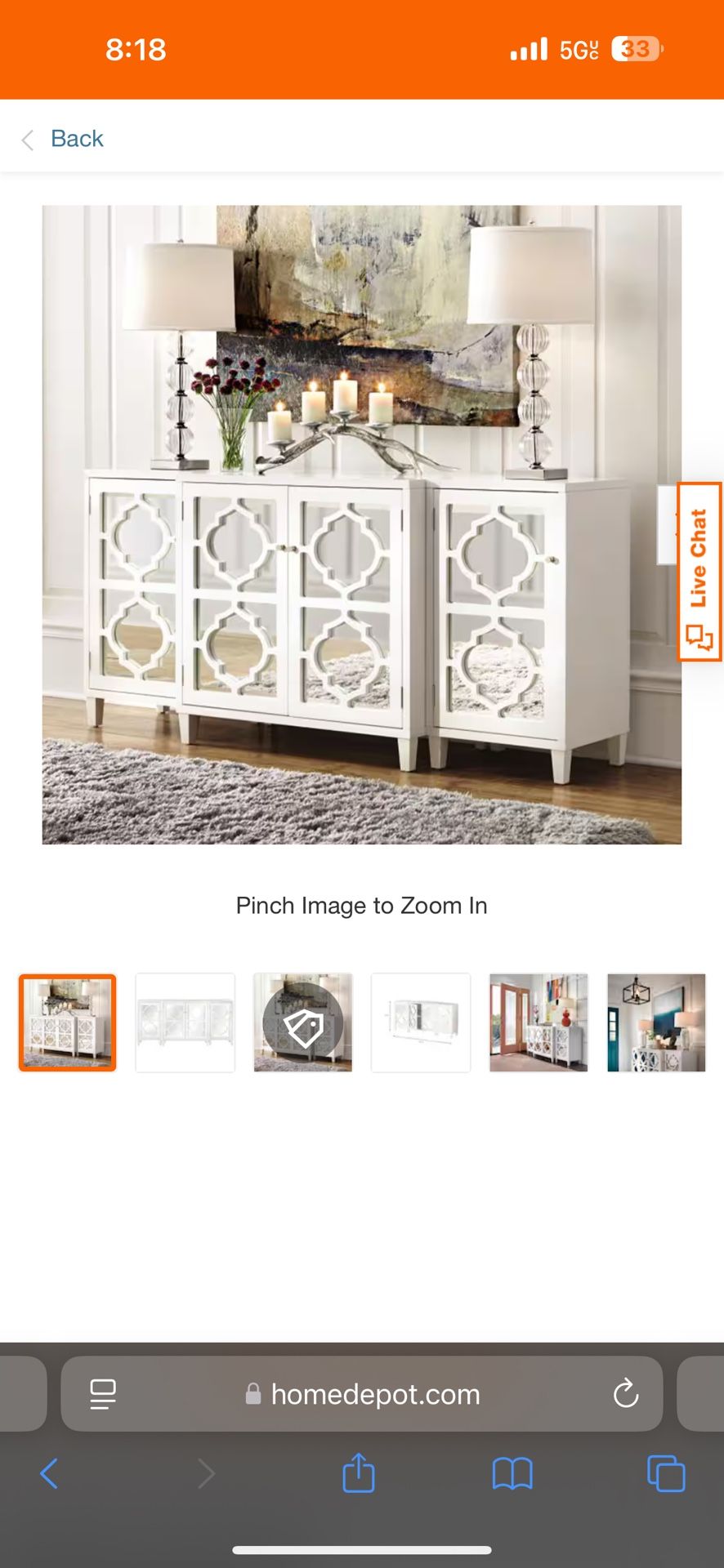Good condition. Does show wear and tear. Small crack on one mirror door. Great for dinning room storage.