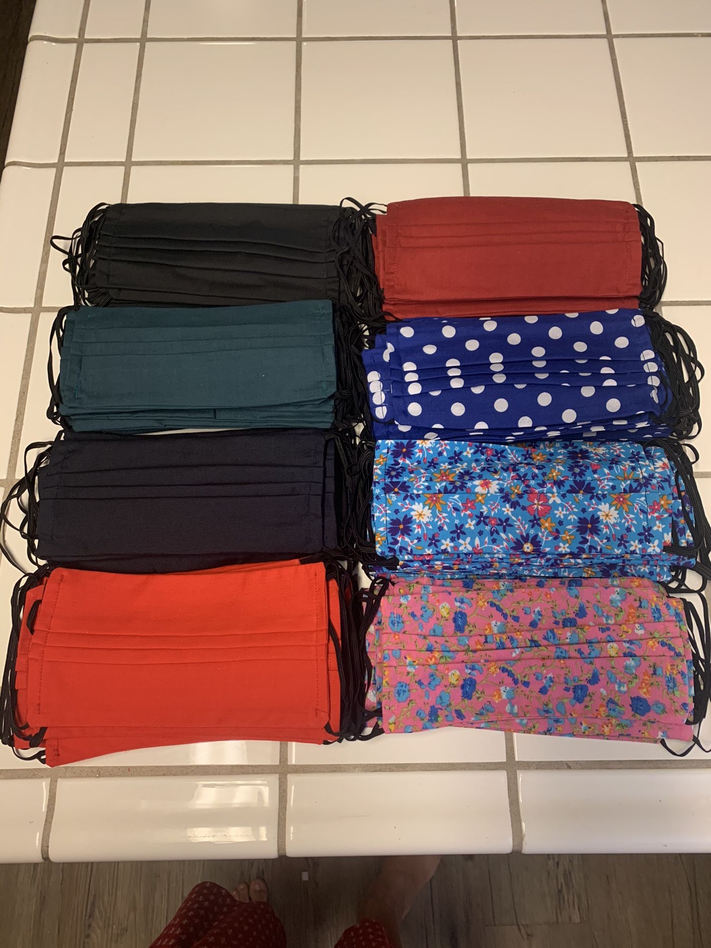 100% cotton, available to pick them up $3 eachwashable, reusable, with pocket for filter, adult size 100% algodón, disponibles para recoger $3 cada una, Washable, reusable, con abertura para poner filtro, para adulto