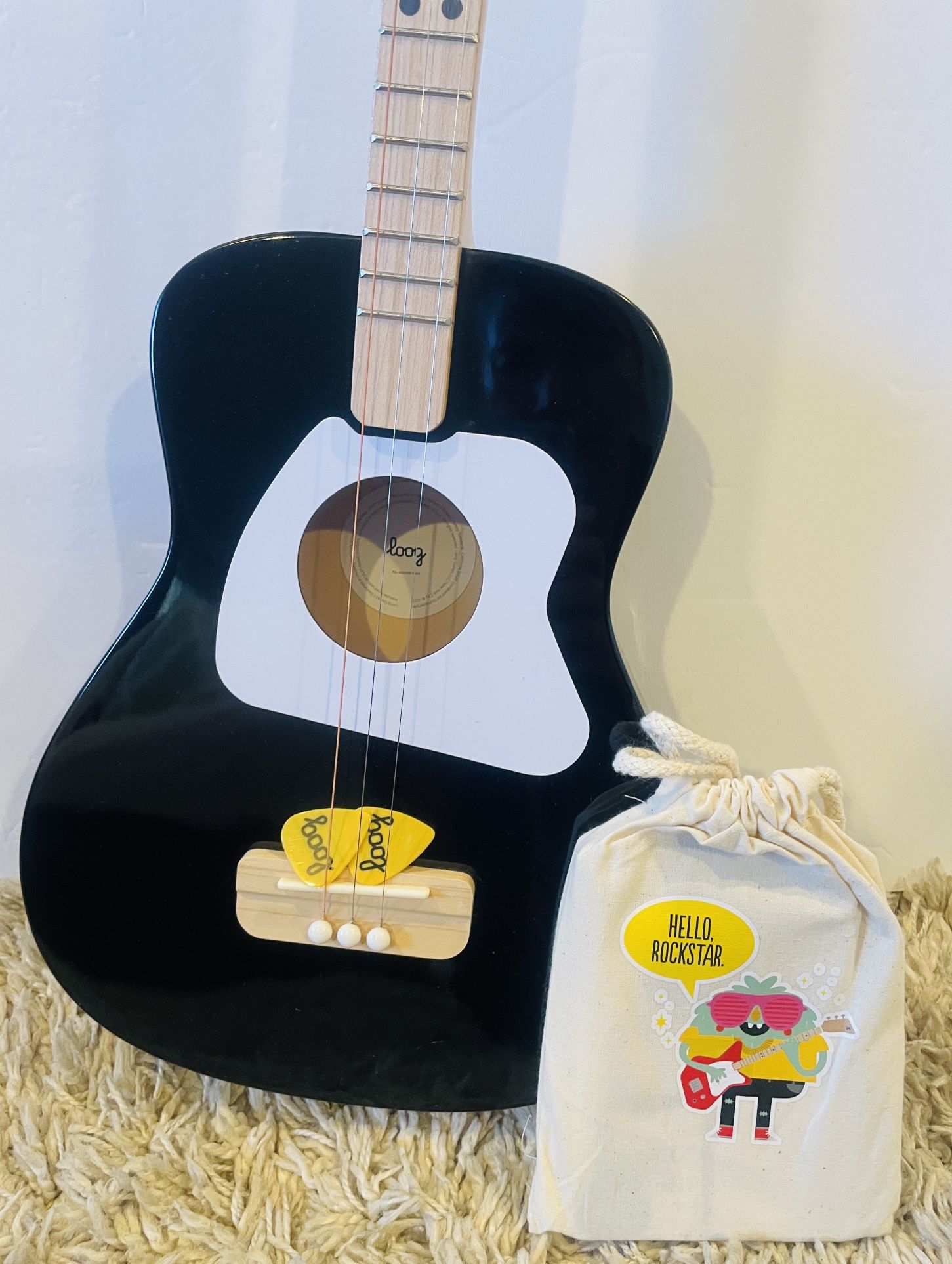 Loog Pro Acoustic Kids Guitar 3 String - Black Excellent condition! Ages 6+ Body Material: Solid & Laminated Basswood Neck/Fretboard: Maple Wood Guitar Pickup Configuration: H-H-H String: Phospor Bronze Hand Orientation: Ambidextrous