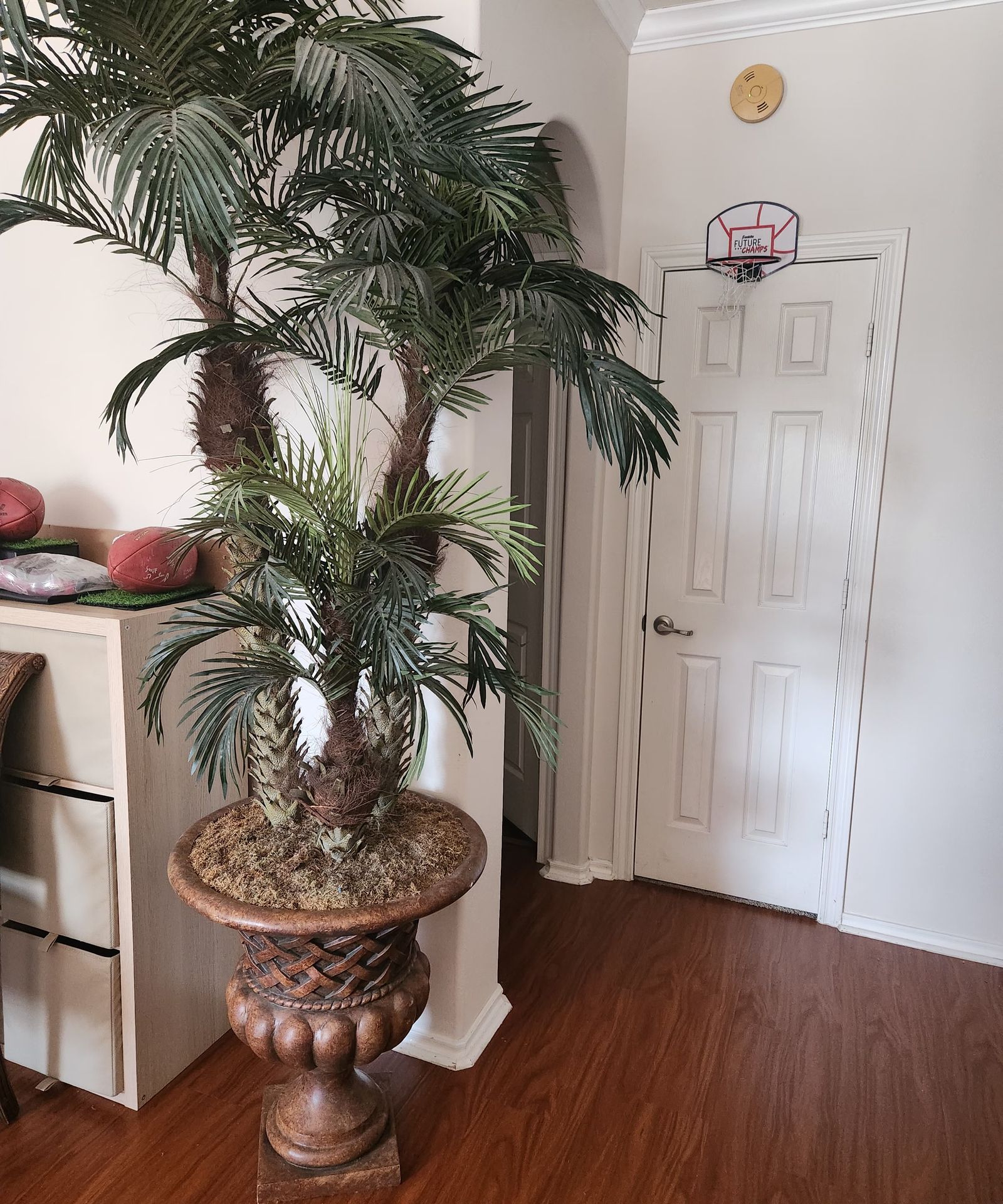 Potted fake palm tree about 7 ft tall almost new.🌴