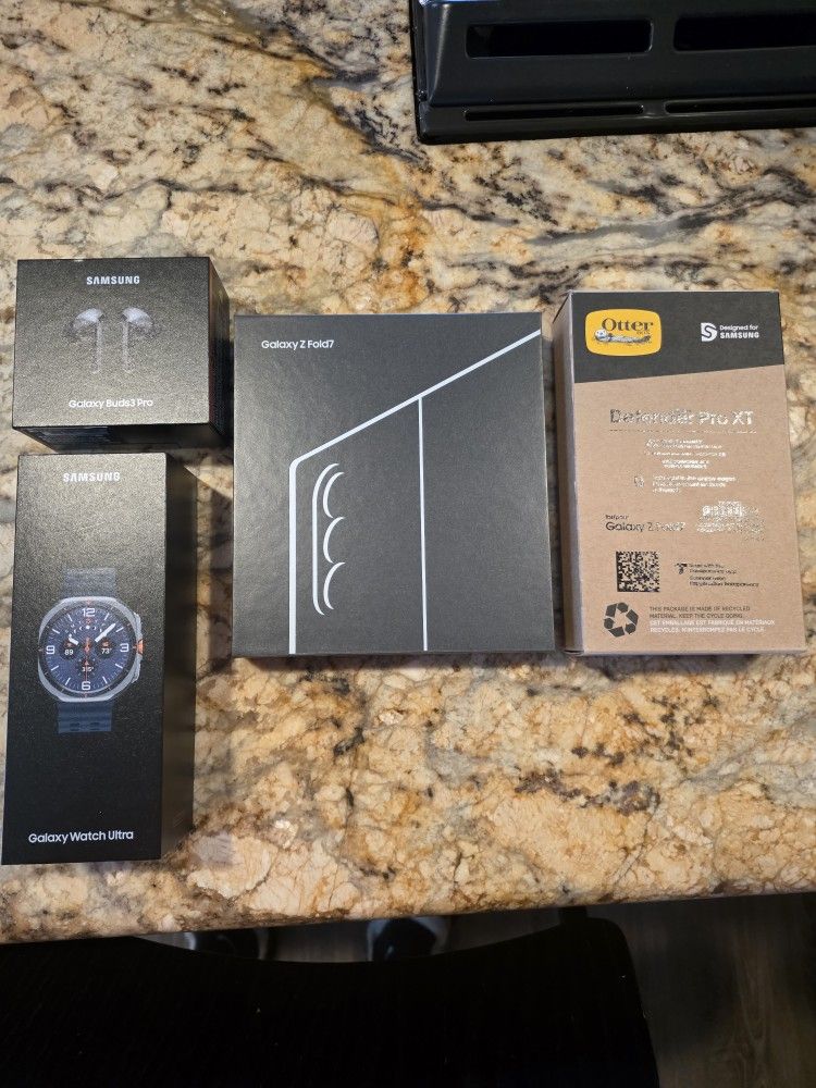 For sale, I'm selling my Samsung phone, watch and earbuds as a combo, all items are in mint condition and working 100% pretty much in new open box condition. Samsung Galaxy Fold 7 unlocked for any carrier with 512GB color Blue. Also with a Otterbox case. Samsung Galaxy Ultra watch 2025 LTE/BLUETOOTH Samsung Galaxy Earbuds Pro 3 Everything is being sell as a combo only!!!! Price is firm and no trades!!!!! Don't ask dumb questions or you will get a dumb answer, use common sense!!!!