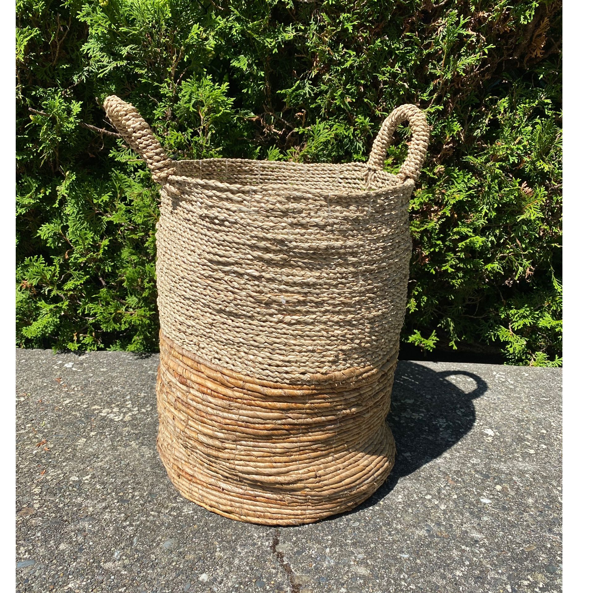 13.5” diameter x 16” high This little woven basket is in clean condition. I housed a plant pot in there but it also works great for toy storage ext. cash pickup in magnolia