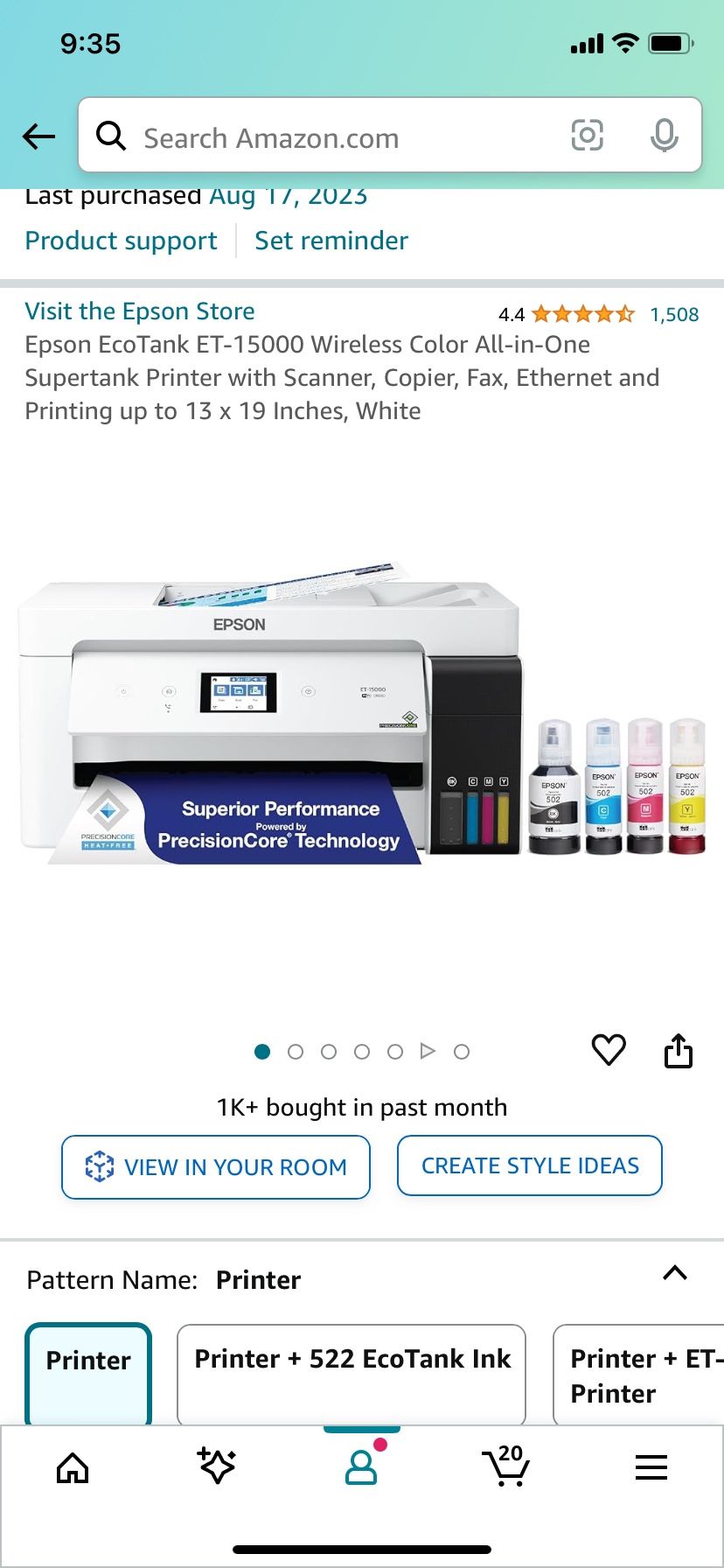 Epson EcoTank ET-15000 Wireless Color All-in-One Supertank Printer with Scanner, Copier, Fax, Ethernet and Printing up to 13 x 19 Inches, White brand